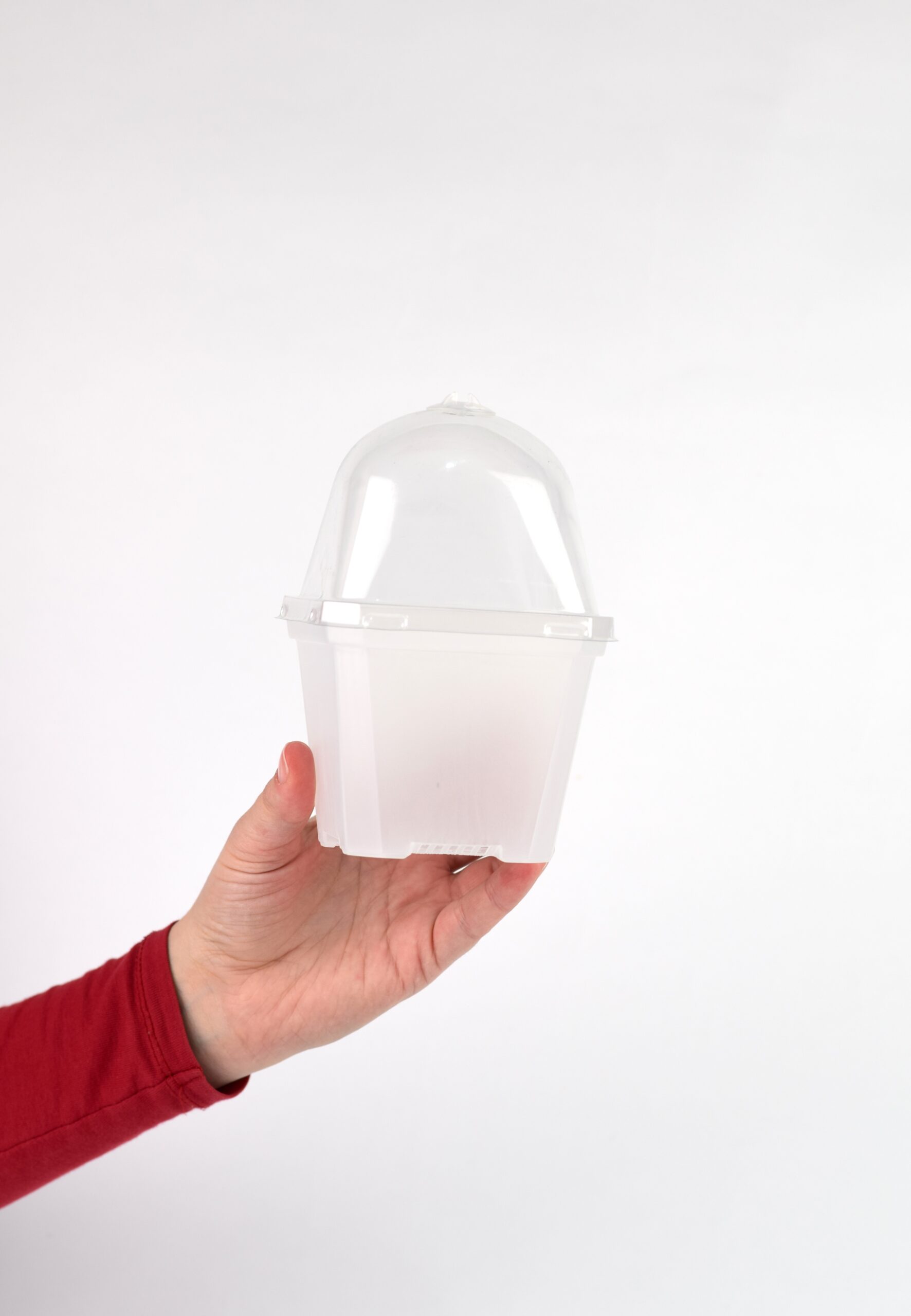 Lonček je prozoren, kar nam omogoča spremljanje korenin, pokrov ali kupula pa nam pomaga pri ohranjanju stabilnega okolja in visoke vlažnosti, kar je ključno pri zgodnjem razvoju rastlin.